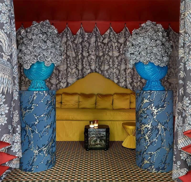 Benedict Foley’s spectacular Zoffany showroom at WOW!House Chelsea Design Centre earlier this year. Swathes of Long Gallery Brocade fabric (in grey) adorn the walls and entrance way.